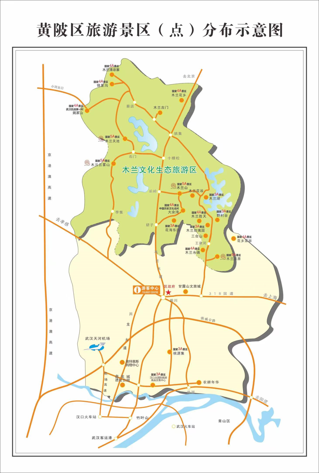 黄陂区旅游景区(点)分布示意图最新版