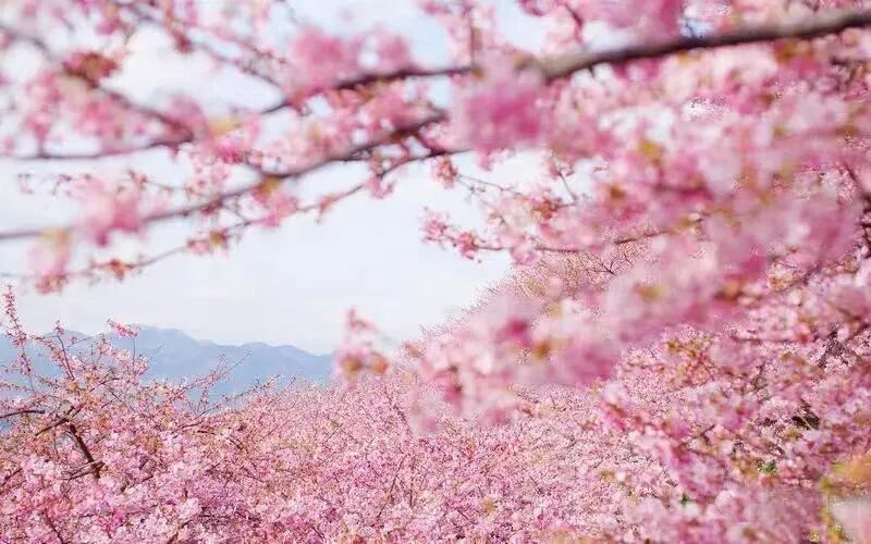 樱花盛开时节,十里花山,万树云霞,明艳动人,蔚为壮观。煦风吹拂,樱花雨洒,浪漫非常。