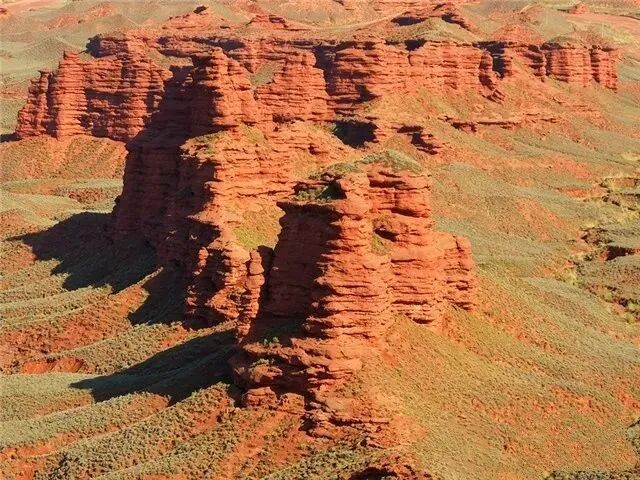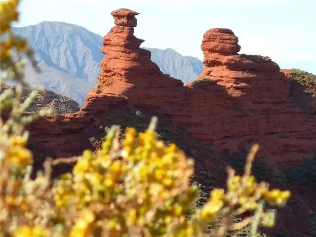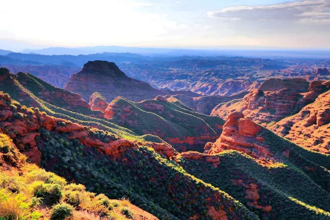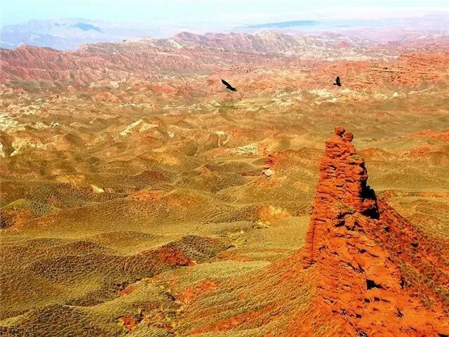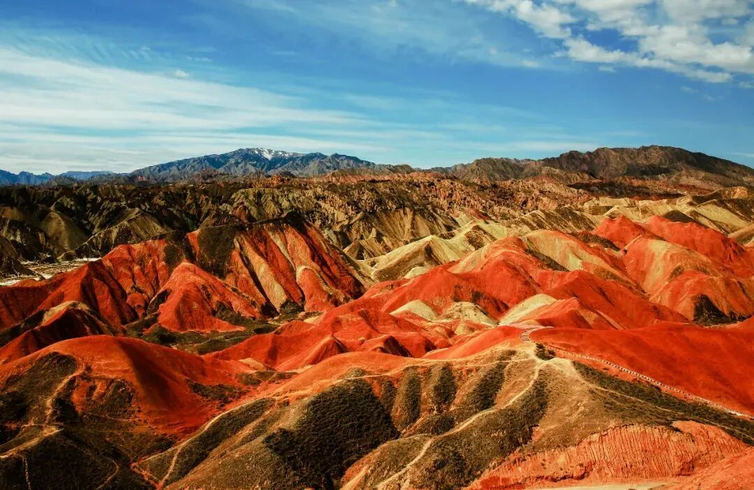 红、黄、橙、绿、白、青灰、灰黑、灰白等多种色彩,将山丘装点得绚丽多姿。在阳光的照射下,像披上了一层红色的轻纱,熠熠泛光。其也是《三枪拍案惊奇》、《花木兰》、《太阳照常升起》等大片的重要取景地。
