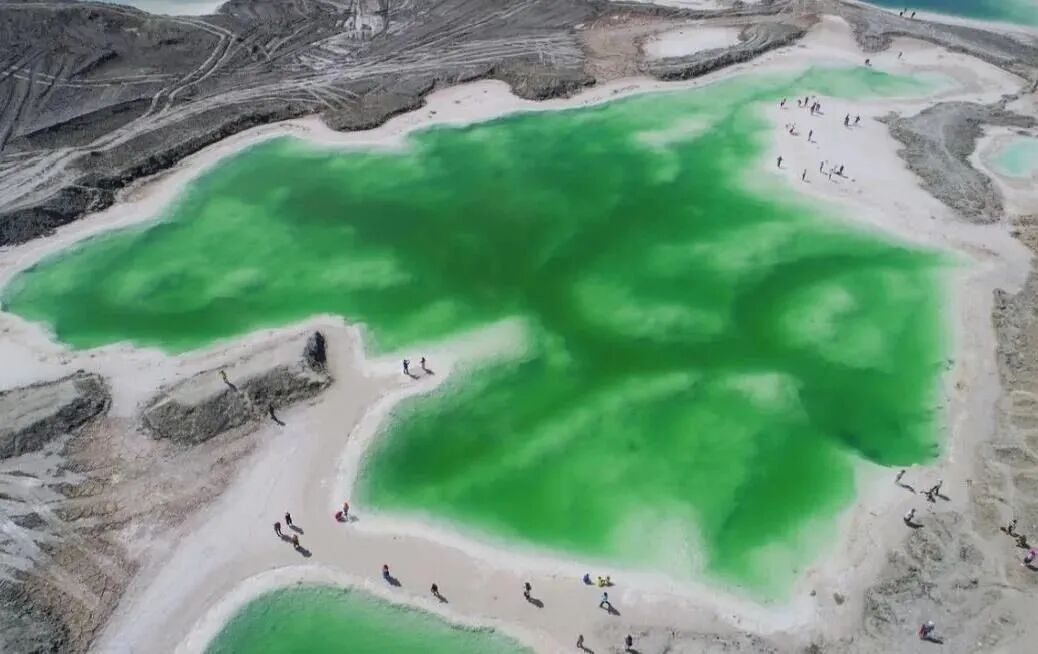 大柴旦翡翠湖属硫酸镁亚型盐湖,由于盐床由淡青、翠绿以及深蓝的湖水辉映交替、晶莹剔透,当地人称之为“翡翠湖”。