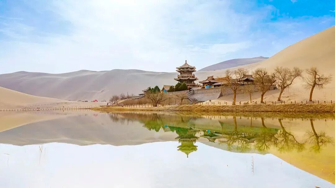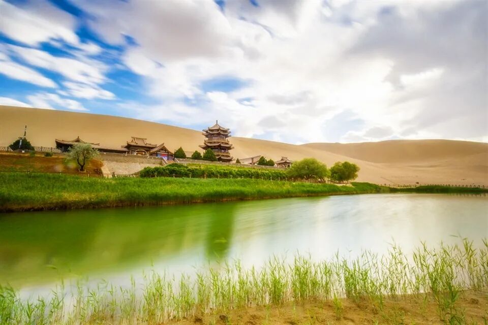 “山以灵而故鸣,水以神而益秀”。鸣沙山月牙泉古往今来以“沙漠奇观”著称于世,鸣沙山以沙动成响而得名。月牙泉处于鸣沙山环抱之中,其形酷似一弯新月而得名。因此,鸣沙山月牙泉又有“爱情之山泉的美誉”。