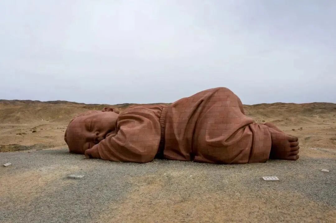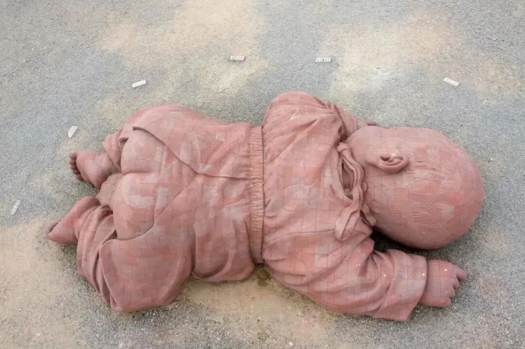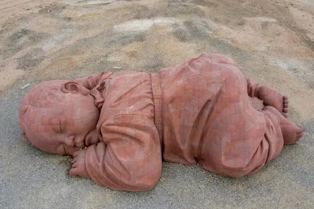 《大地之子》雕塑主体是一个恬然入睡的巨型婴儿形象,长15米、高4.3米、宽9米,是目前国际体量最大的婴儿雕塑。通过这座雕塑唤醒人们的保护地球之心。