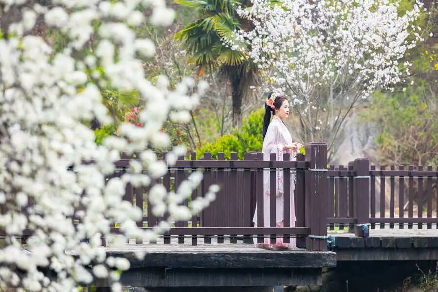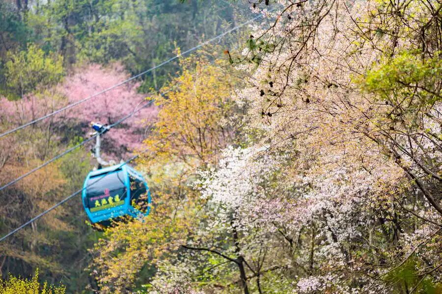 在这里,你可以乘坐缆车而上,看杏花随风摇曳,将春意尽收眼底;也可以与家人一起泛舟而下,看山花与湖景互相交融,坐拥一池春水;又或者换上一袭汉服游园,亲近自然释放活力,与春天撞个满怀......