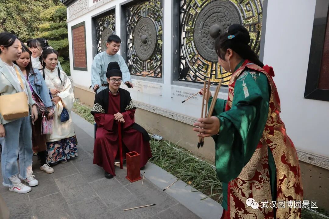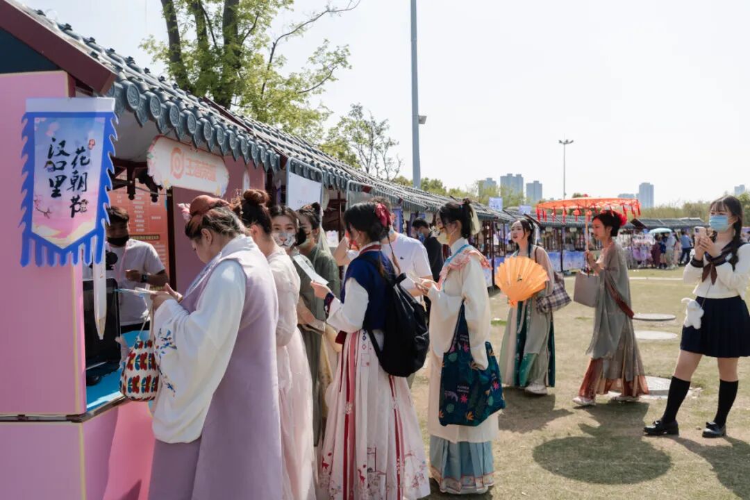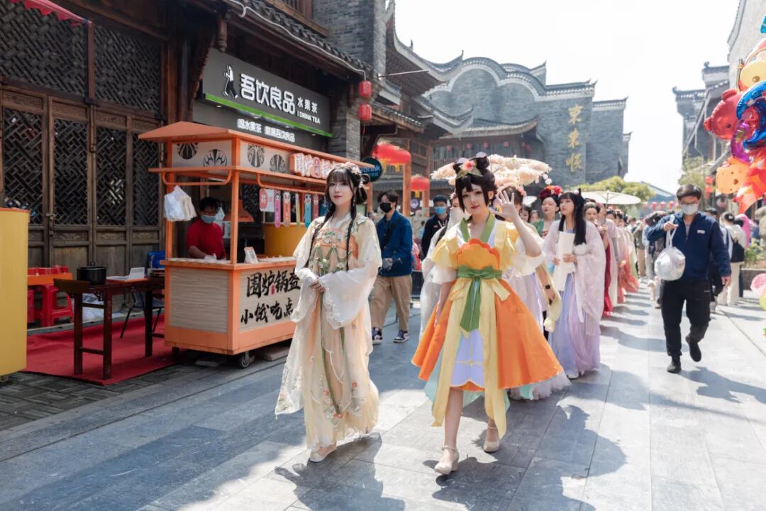 在这里,你能看到花神们演绎“胡旋舞”“剑舞”“纸扇书生”等节目,还能参与“投壶”“上上签”多个游园互动,为花朝踏青之旅增添韵味。