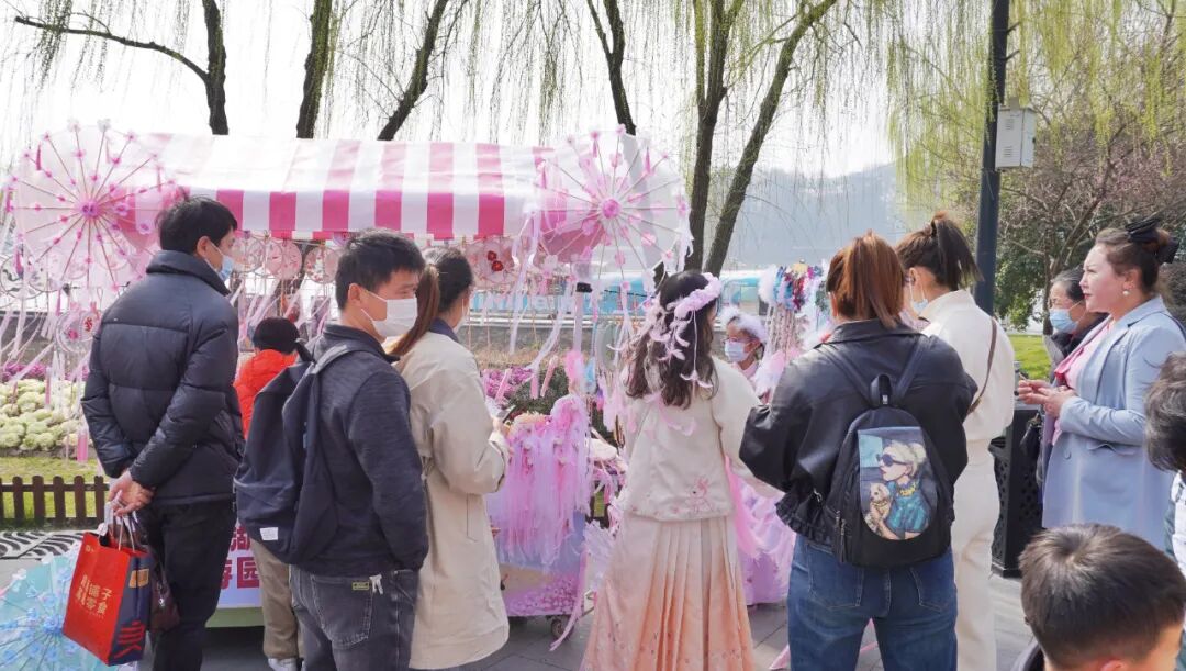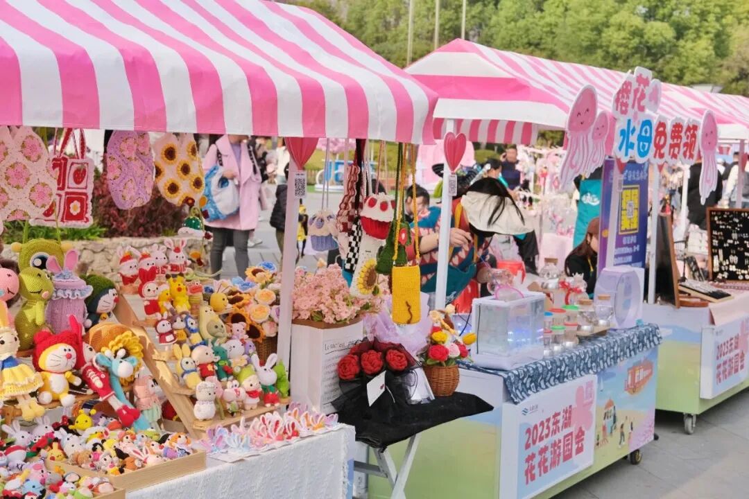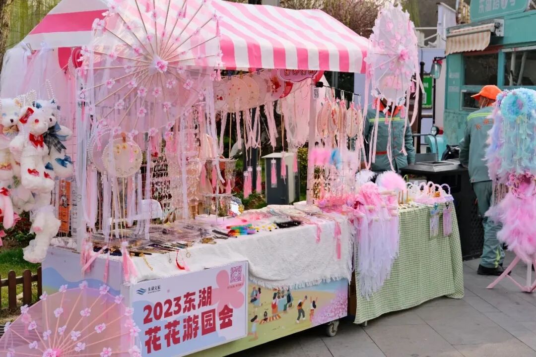 “赏樱从这里出发”!以东湖绿道湖光序曲广场为东湖赏樱游首站,举办樱花变妆好物市集,首推变妆游美颜套装体验,还将集合樱花周边文创、樱花美食等多样摊玩好物。游客变妆后可购票前 往樱花季特别推出的诗画东湖游船打卡拍照,成为最具文艺范的樱花达人,直达樱园,畅游东湖!