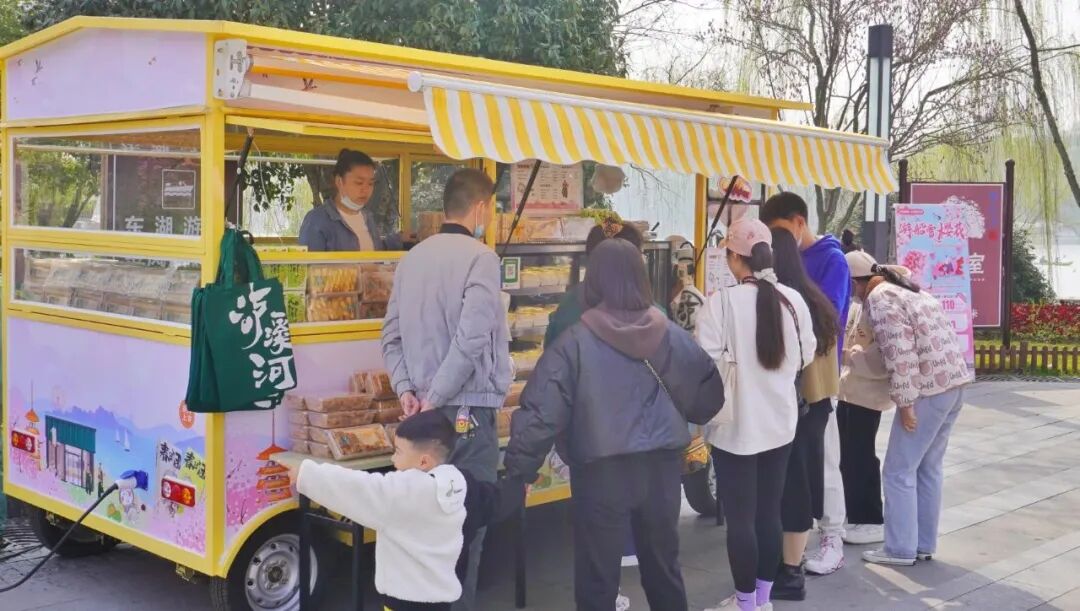 源自“中国桃酥之乡”的糕点品牌“泸溪河”定制樱花巴士车以【传承古法技艺,弘扬传统糕点文化】为训诫,现场打造中国味道。