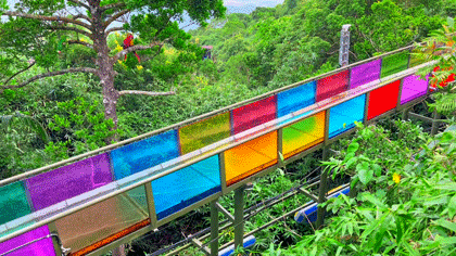 这里还有长3100米,相当于93层楼的落差的“林上飞水上漂过山车”。穿越雨林之巅、探秘雨林深处、俯瞰山海美景、享受惊险刺激。