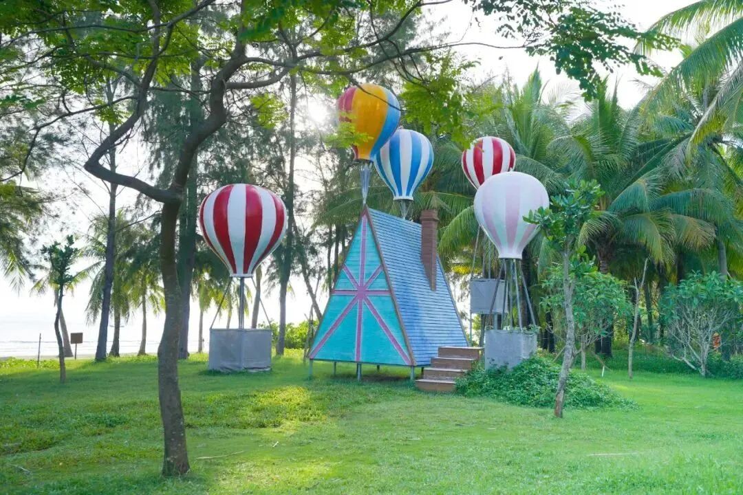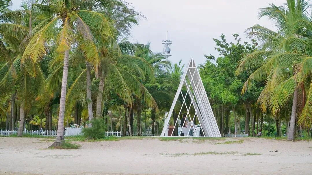 与大海衔接的椰林,带你提前感受生机勃勃的夏天。草坪被风揉成一团治愈又旺盛的色彩,足以吸引游人在此奔跑、露营。