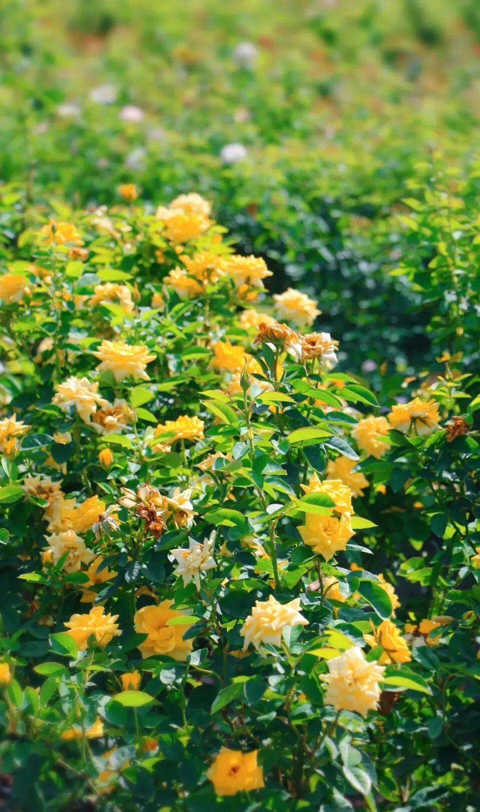 北方的树木刚刚抽芽,玫瑰谷的花朵早已开得放肆。一进园就能看到自由生长成各式姿态的影像,立马拥有好心情。