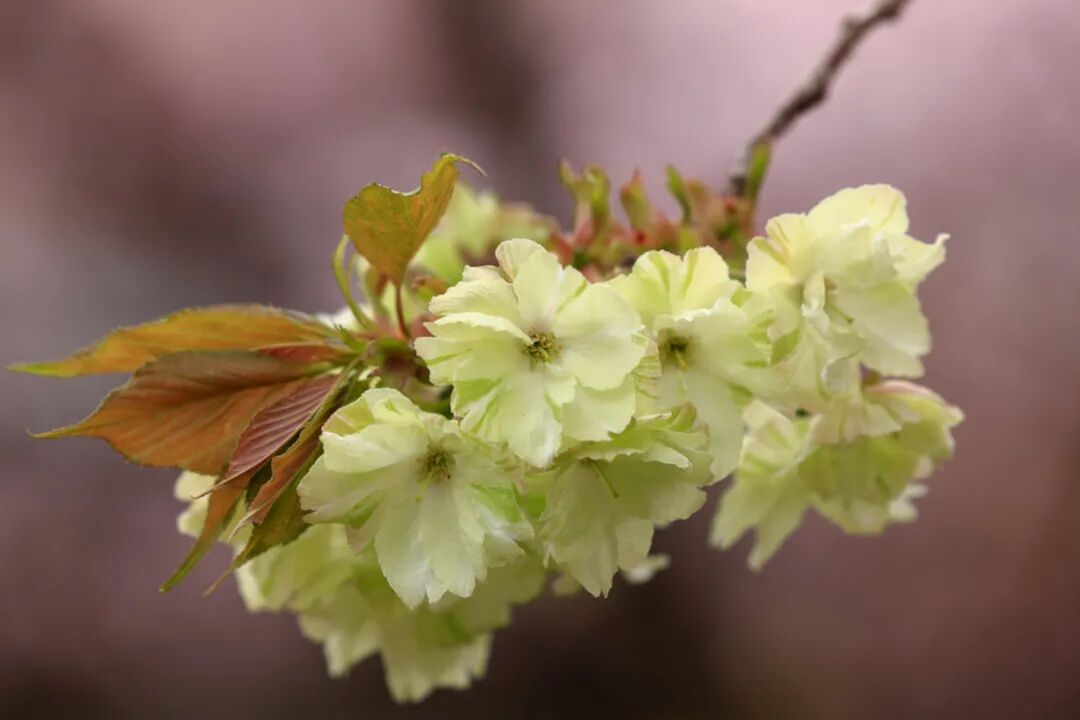 一些稀有的樱花树,如Prunus Ukon开黄色的花,Prunus Gyoiko开淡绿色的花。此外,某些品种的樱花在盛开期间可能会改变颜色,例如,一朵花刚开始时开成白色,几天后颜色会变成粉红色。