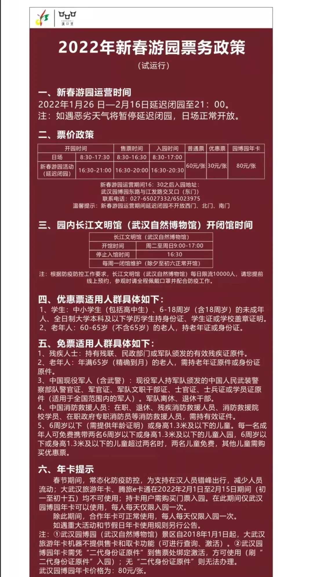 武汉园博园(武汉自然博物馆)春节期间(正月初一至十五)不可使用年卡入园的通知