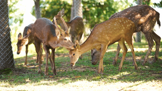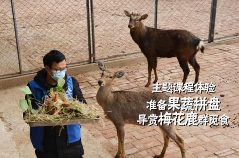 (6)爱心喂养体验,梅花鹿等草食动物觅食,对比鹿鸣的不同音频、音调;