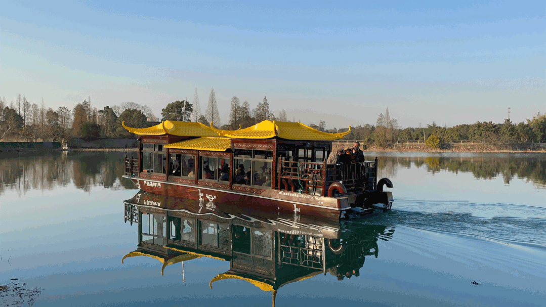 乘官船游万亩严西湖,感受万亩严西湖上吹来的风,特别的惬意。