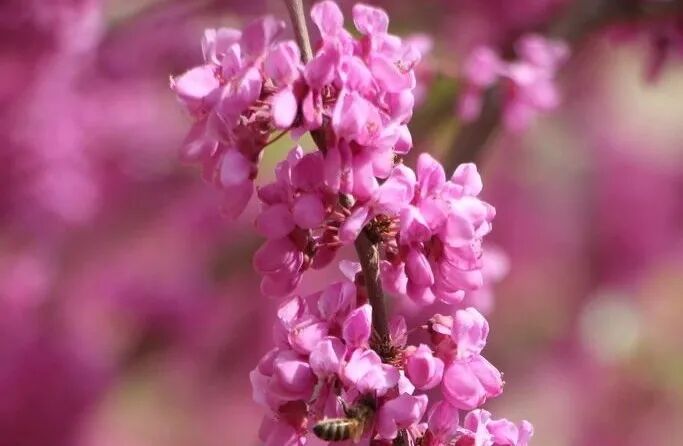 这里都会开满桃花、紫荆花、迎春花等组成烂漫的色彩