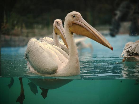 白鹈鹕有强大的喉囊,嘴长粗直,可以整条活吞鱼食,偶尔会发出喉音咕哝声;