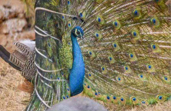 (8)导赏蓝孔雀觅食,模仿孔雀、珍珠鸡等陆禽鸣叫声;