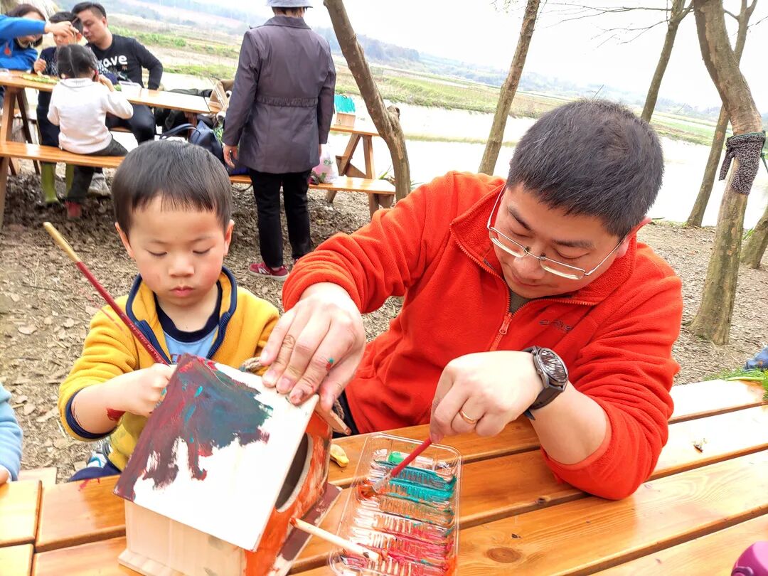我们不仅只是植树,我们也会让孩子们亲子动手用色彩和想法打造一个专属的鸟屋,悬挂到小树上。