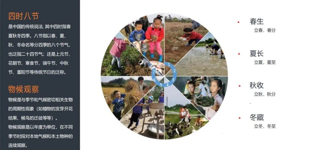 比如植物的发芽开花结果、候鸟的迁徙等等,我们称之为“四时八节”。用充满趣味性的自然活动,让孩子对自然常识的理解变得更深入,带来更多主动的思考。