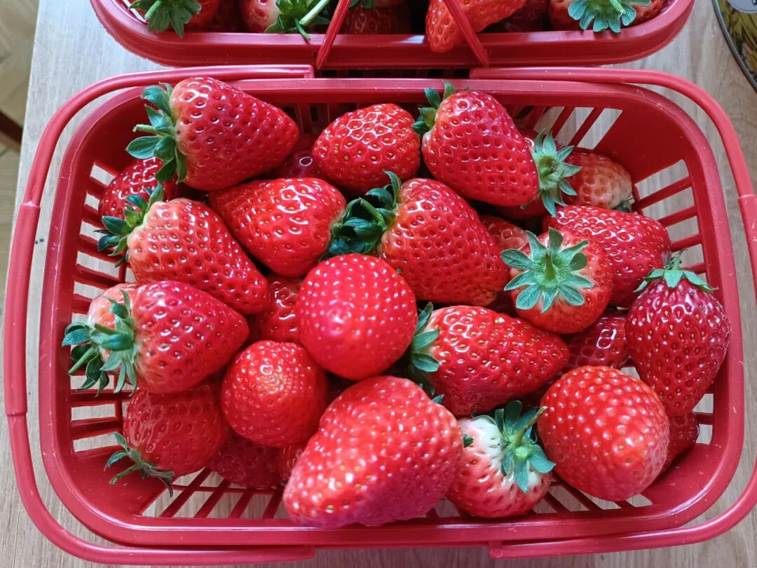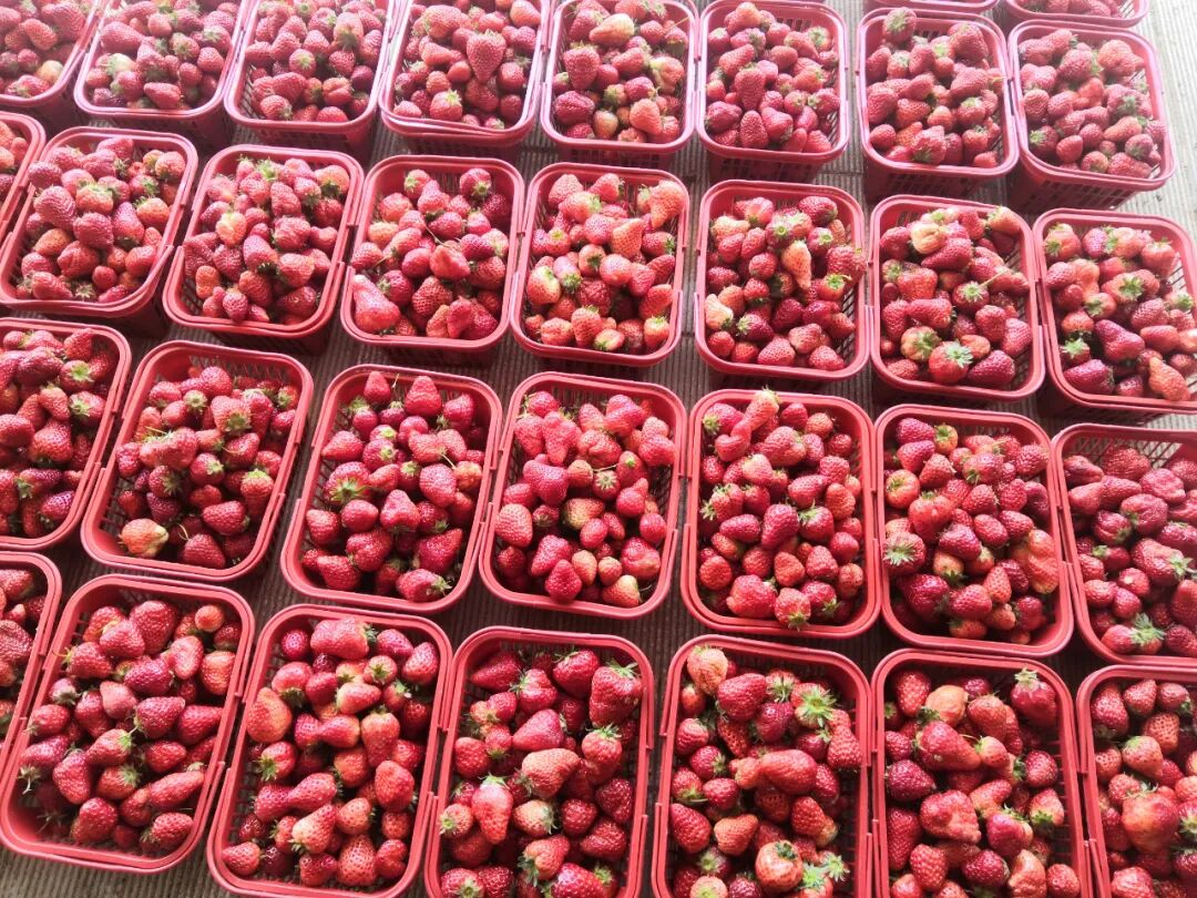 将叶子掀开,一颗剔透肥实的草莓蹦出,挺着饱满的红色肚皮,催着你采摘。