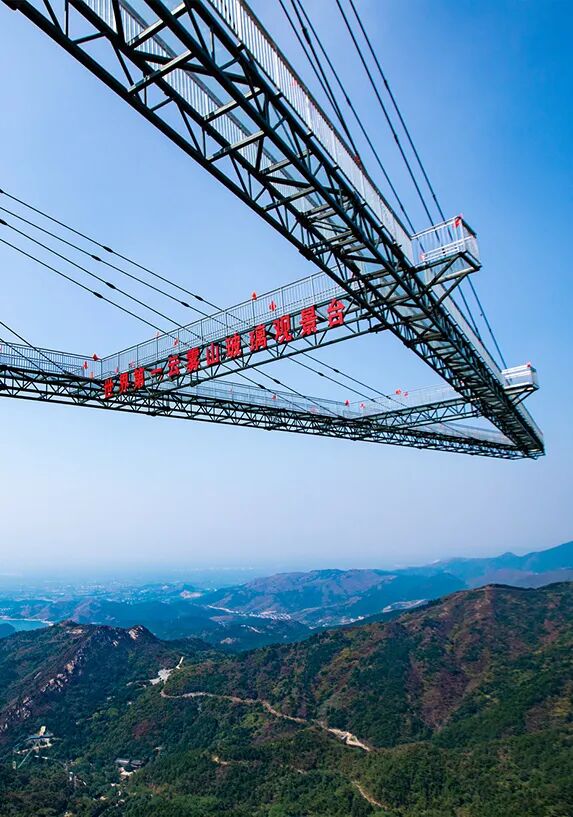 该观景台全长81.9米,海拔高度709米,荣获吉尼斯世界纪录:“最长的悬挑玻璃观景平台”。身处观景台上,可以俯瞰方圆几十公里内的地势地貌。此外还有步步惊心吊桥,建设在两座山顶端,行走上面横穿悬崖,小鹭想想就觉得非常惊险刺激。