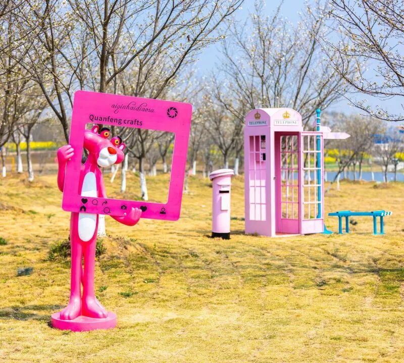 景区的花田边上多矗有一方红色的小角亭,
