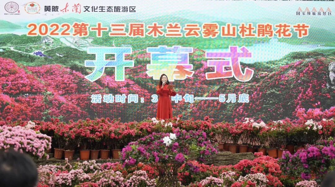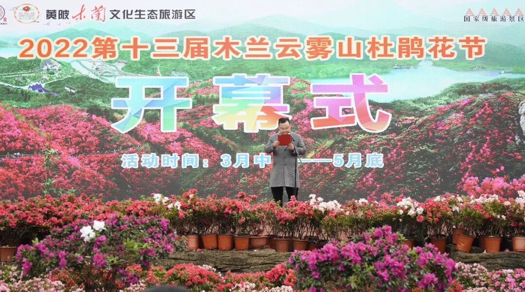 2022年3月23日,2022第十三届木兰云雾山杜鹃花开幕。23日上午十点,第十三届木兰云雾山杜鹃花节在景区花神广场正式启动。景区领导首先致欢迎词,相关部门负责人随后登台就此次活动做出了指导和支持。