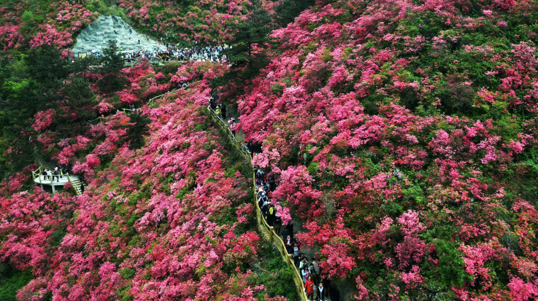 作为湖北省武汉市著名的赏花旅游目的地,木兰云雾山景区的杜鹃花节受到各界的高度重视,云雾山杜鹃花节已经成功举办了十二届了,经过十余年的积累,木兰云雾山景区杜鹃花节已经成为全国知名的赏花品牌,云雾山景区是一个集赏花游览、生态观光、休闲养生、亲子游览、研学旅行、商务会议、拓展、体验项目于一体的多元化景区,其中,万亩野生杜鹃花海大气磅礴的壮美奇观已逐渐成为大众游客每年春季“必打卡”之地。由于今年的雨水较好,一二月份气温偏低,花蕊将更加润泽,杜鹃花绽放得比往年更加旺盛,三大核心赏花点:花宇山、花海、花洋已陆续盛开,现在,已进入赏花最佳盛花期。今年的赏花节活动时间:3月中旬-5月底。