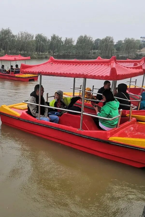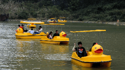 快来乘坐小黄鸭游览这湖光春色吧