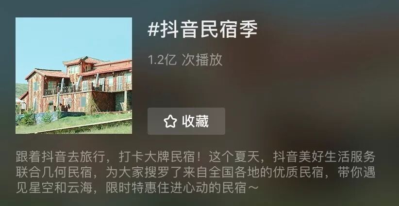 现在抖音的普及度越来越高,很多人都喜欢刷抖音,抖音的内容潮流酷炫,主要以娱乐化为主。我们可以把自己的民宿视频发到抖音上,也可以通过介绍周边景点或者文化,为我们的民宿引流,抖音平台也会推出相关的活动,之前曾推出了抖音民宿季、抖音云旅游等,这些活动鼓励民宿主上传视频分享自己的民宿。