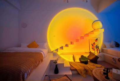 绝美永生花墙十日落灯的组合,房东太会啦,橘黄色的光晕温柔的像少女的脸颊和傍晚屋子里的一切都配合的恰到好处随手拍了几张照片就超级好看