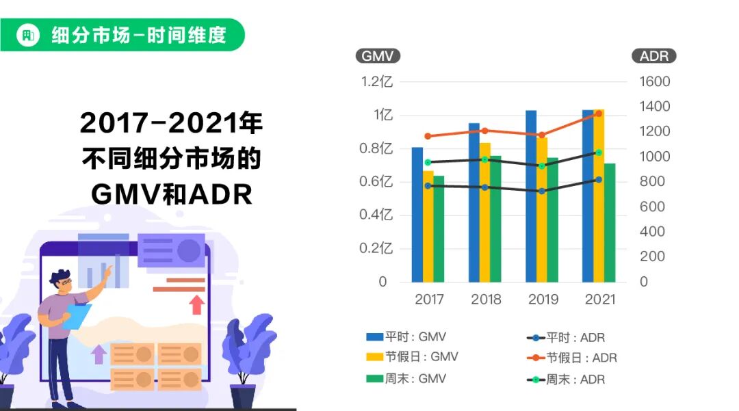 节假日市场的交易规模取代了平时市场,位列所有细分需求场景的第一;节假日市场的平均房价最高,且差距逐年拉大。