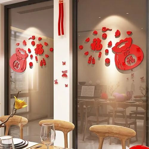 2. 民宿内部玻璃门、玻璃窗可张贴中国年图案、透明喷画;