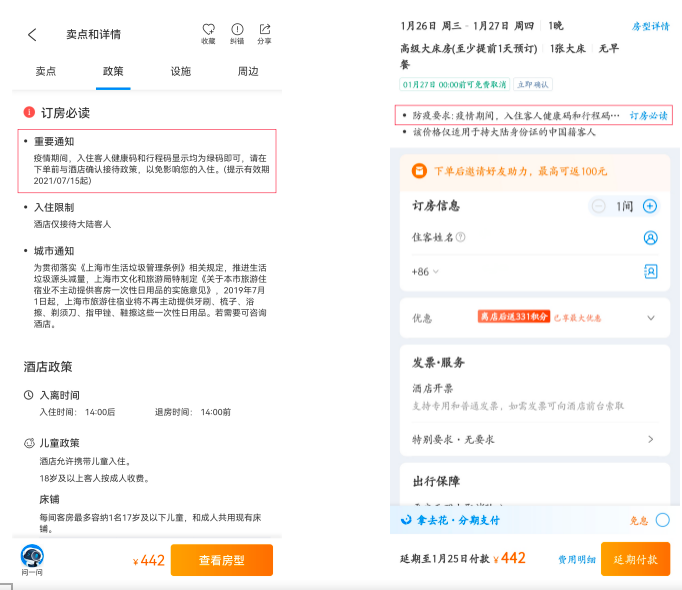不好意思,我们酒店因为社区刚刚通知,无法接待途径该地区客人,我们可以免费给您取消订单,希望您能谅解...: