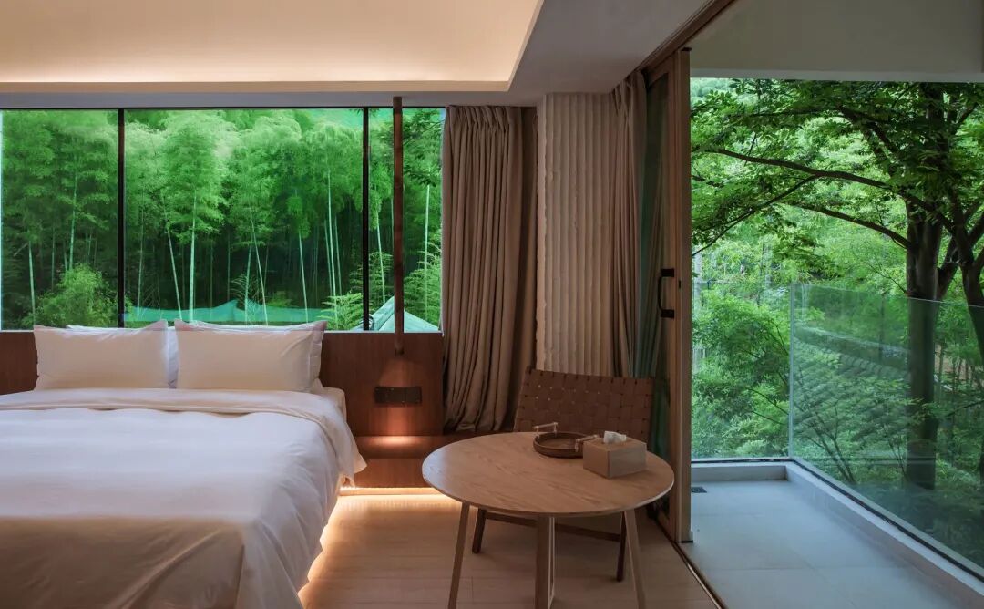 你想一想:阳台对面是近在咫尺的植物园,近处小溪的潺潺流水声应和着树上的鸟叫声,恍若世外桃源。清早起来,你站在这里,手扶护栏,一眼望去便是那片葱葱郁郁的树林,是不是让人精神一振,心情大好?