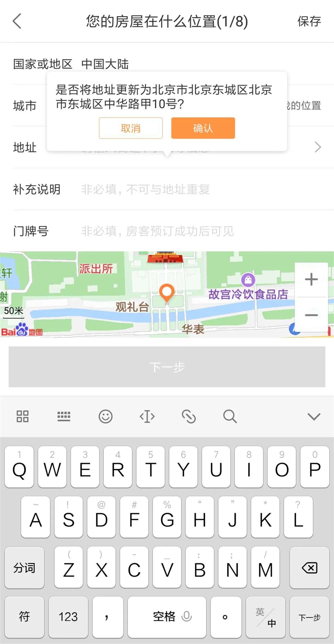 发布房源的第一步是填写房源地址信息