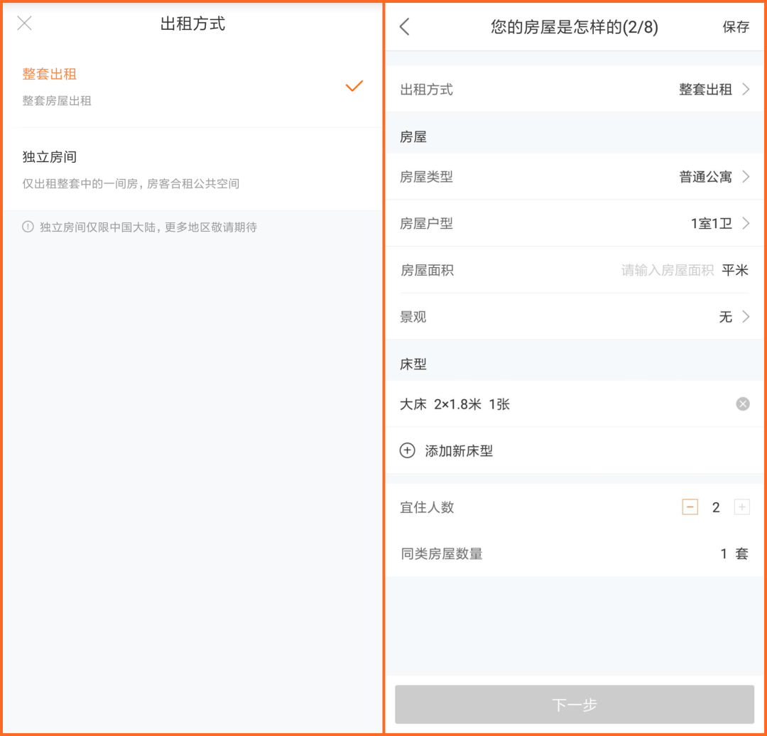 途家民宿分为两种出租类型