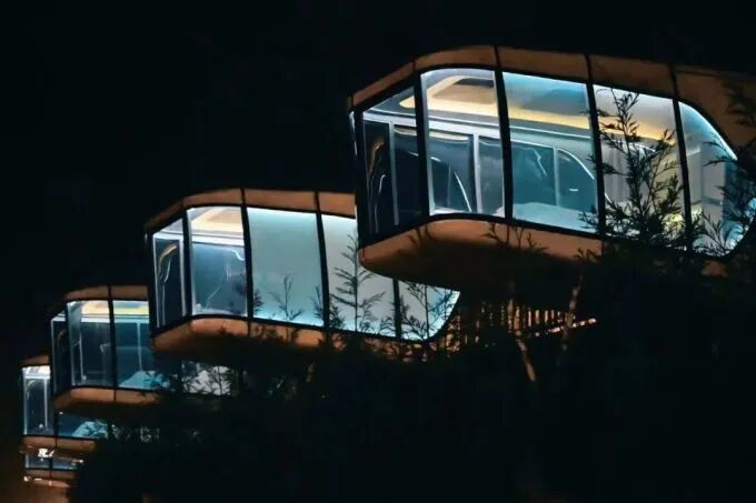 10间飞船样式的熊猫舱,不仅外形科技感超强,内部功能更是一应俱全。纯净水系统、新风系统、空调系统、背景音乐系统、投屏TV系统、雾化玻璃、触摸式电控面板、自动天窗、自动窗帘等,高科技感的魅力充斥整个房间。