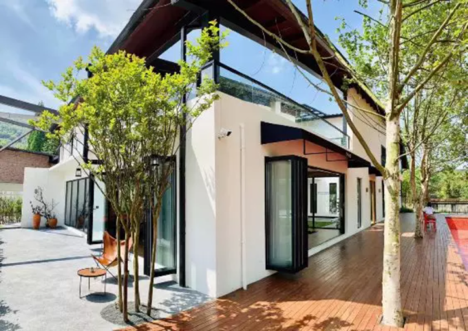 从成都开车1小时,你能坐拥一个庄园,一点都不夸张:2300㎡的区域,光草坪就占了1100㎡。这里的自然、人文景观都充满时尚现代又简约隐世的审美趣味。