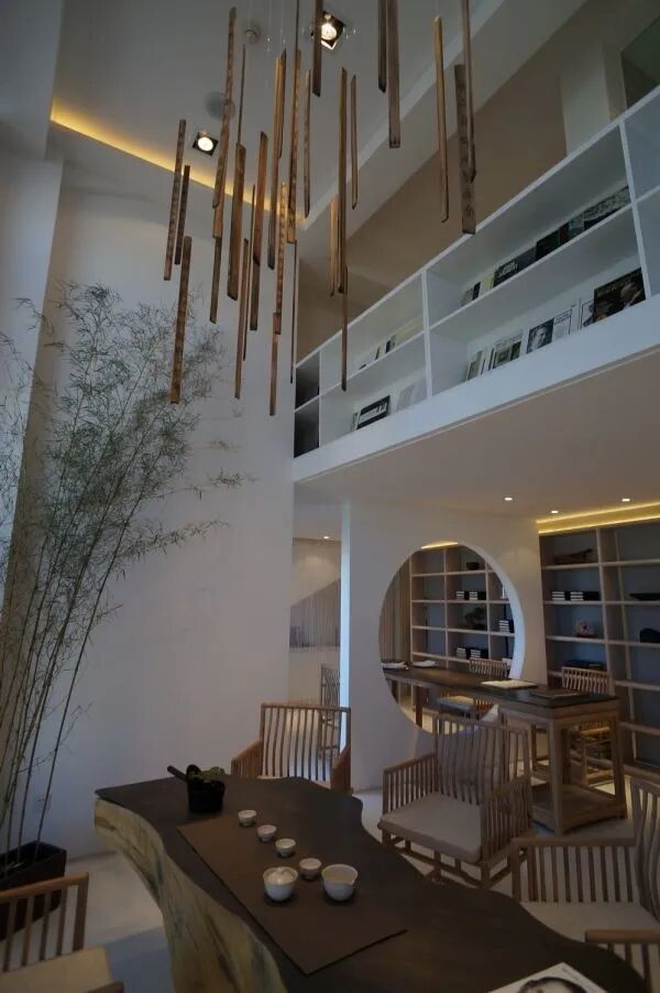 此外,如果已经把自己的店装修成“轻中”风格,有禅意的装点也是必不可少的。一枚细细高高的花器,一枝长细的柳枝,几套简洁大方的茶具,几株造型独特的植物根茎,都是不错的选择。