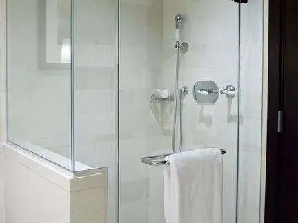 玻璃较薄,如果浴室门用玻璃设计,视觉上可以让客房面积看起来更大。50平方米的客房立马有了80平方米的即视感,住起来宽敞又舒心。
