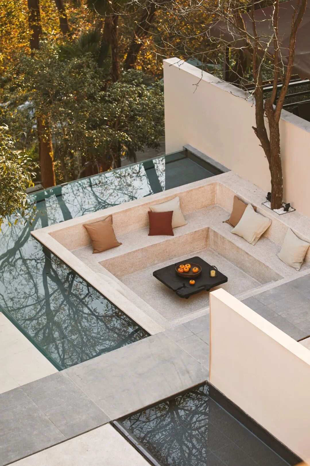 不管是下沉式的下午茶休憩区、庭院里中或是面对山野的露天座位,都是下午茶的好去处。