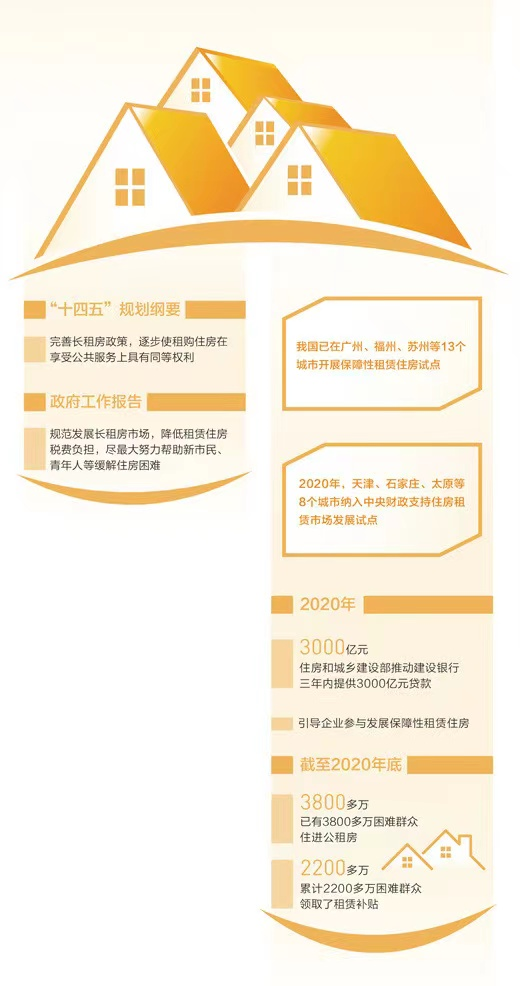 “十四五”规划纲要提出,“加快培育和发展住房租赁市场”“完善长租房政策,逐步使租购住房在享受公共服务上具有同等权利”。作为解决大城市住房问题的重要途径,我国长租房的政策措施不断创新完善,各地也正在积极实践探索,让更多人安居乐业,向全体人民住有所居的目标不断迈进。