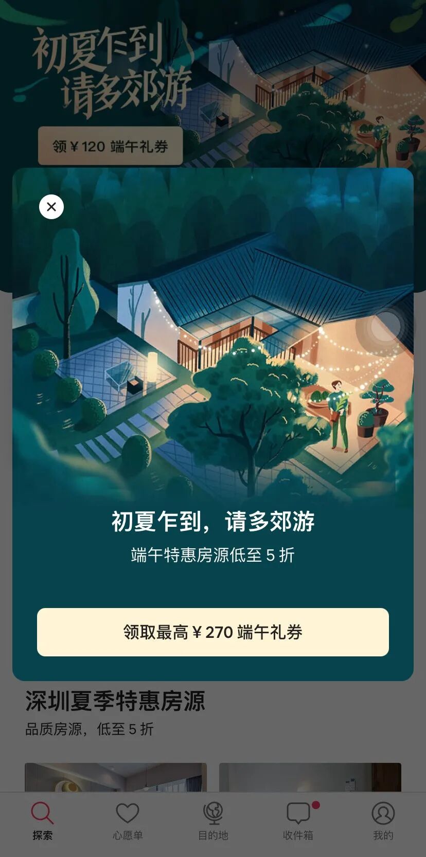 这类型的活动各大OTA平台的APP都会在宣传时挂在首页或是作为APP广告,可以说是含金量非常高的民宿宣传手段之一了。