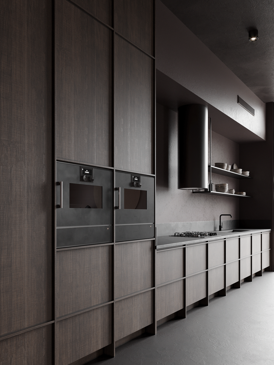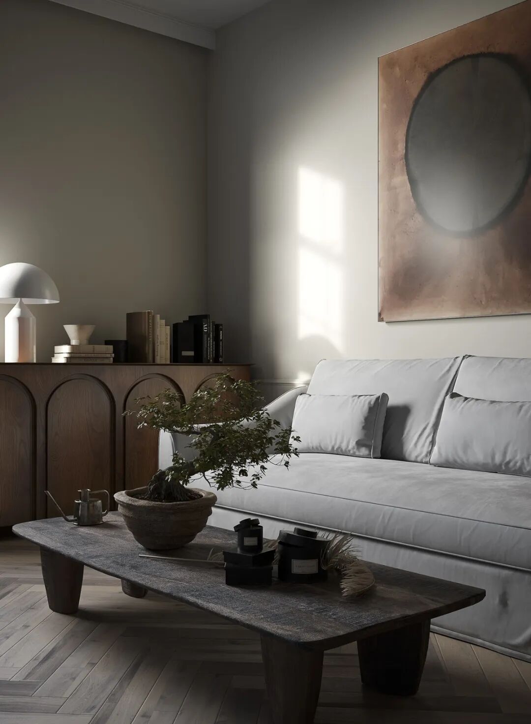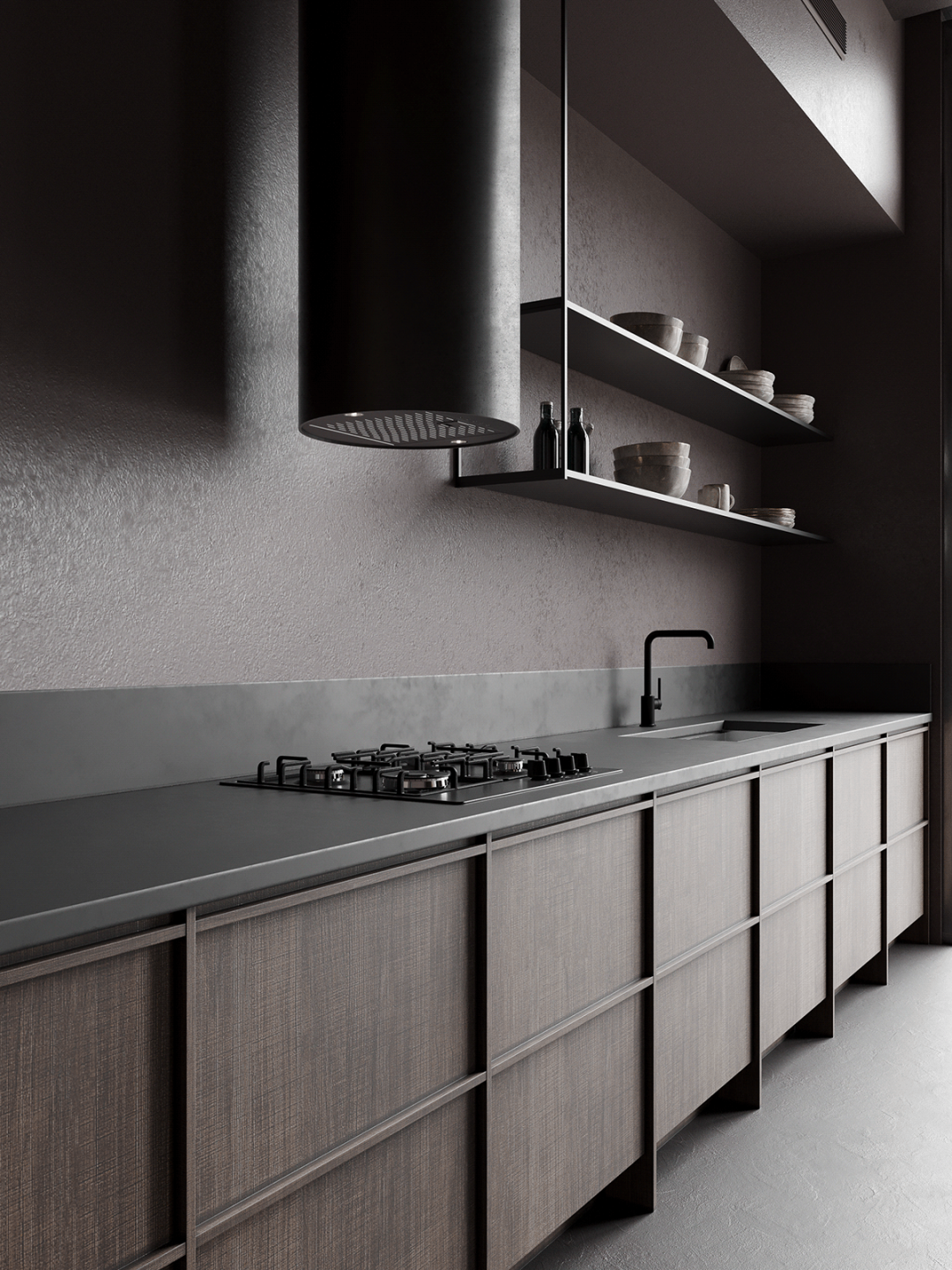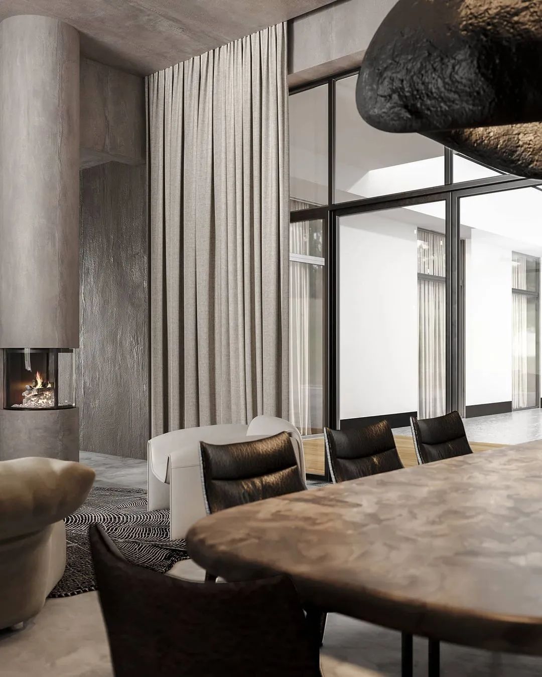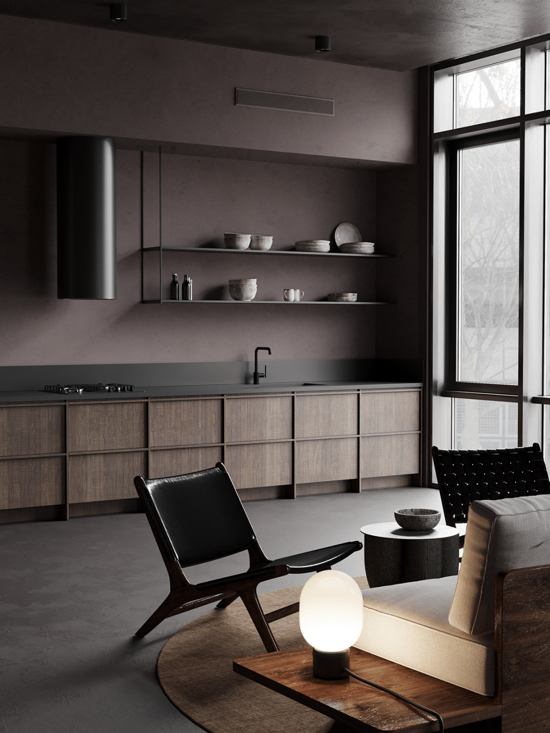 Protopopov Roman整合了东方的侘寂美学,中性灰的色调铺垫了这所住宅的神秘气氛,具有低调、含蓄、朴素、简洁、洒脱的气质,以极简的设计手法和原始自然的材料,营造诗意的当代人居空间。