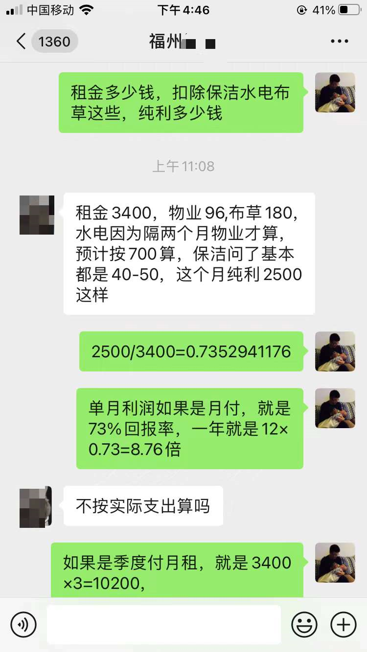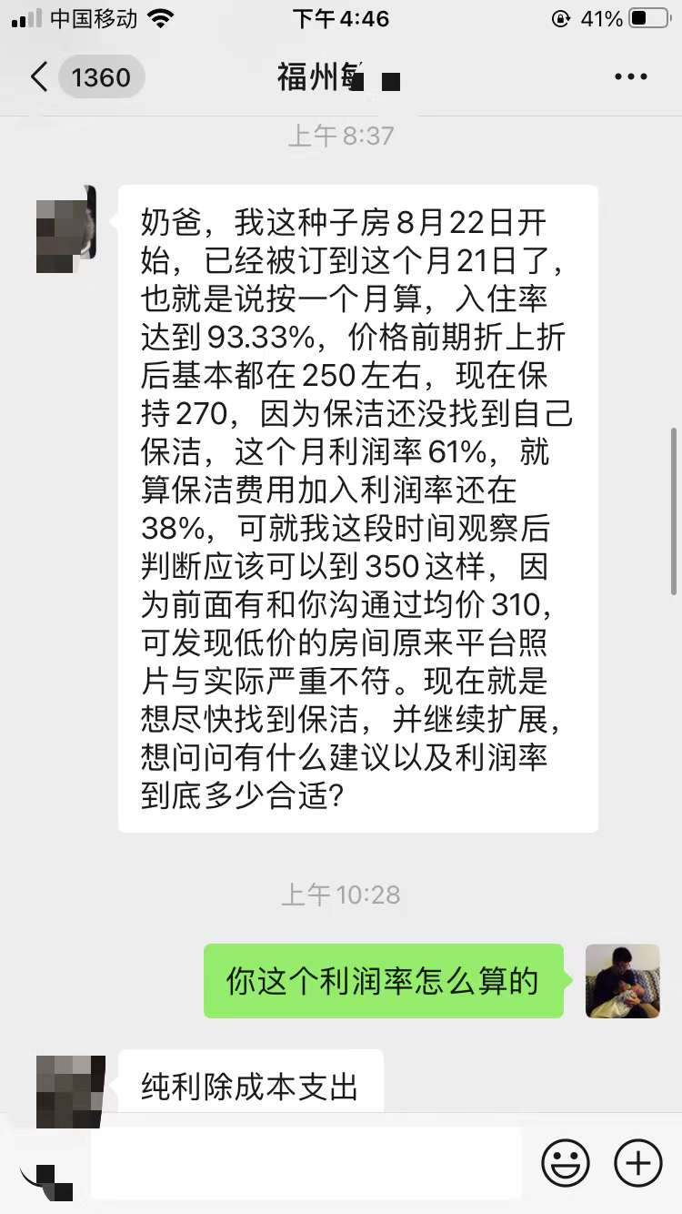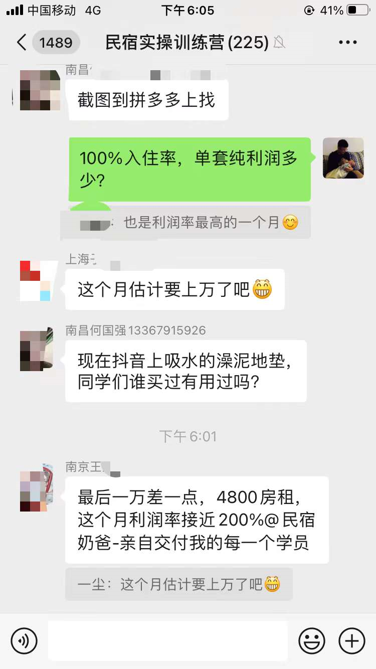 比如下面这位南京小伙伴,单套民宿纯利接近1万,单月利润率200%!毫不夸张实话实说,我们这个社群绝对是全国最有含金量的二手房东交流群,每天盖楼300+,全程没有废话,每天都是日租房技巧信息交流,在这种环境下,你想做不好都很难!一群牛批的人推着你进步!