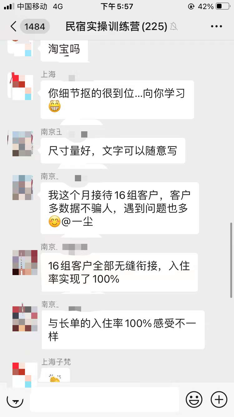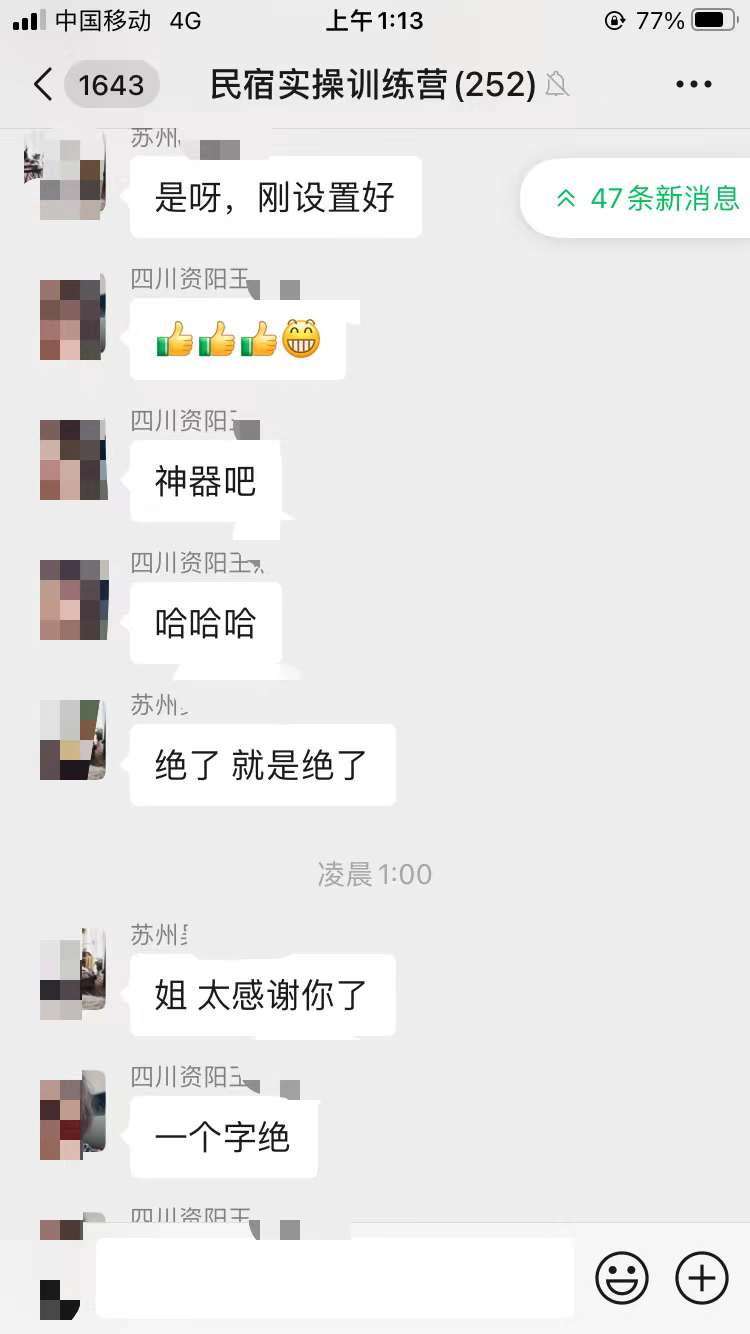 因为我们的社群每天都在做着同一件事,每天探讨的都是与民宿相关的干货!不管大事小事,只要是和民宿经营相关,我们的陪跑社群一一解决