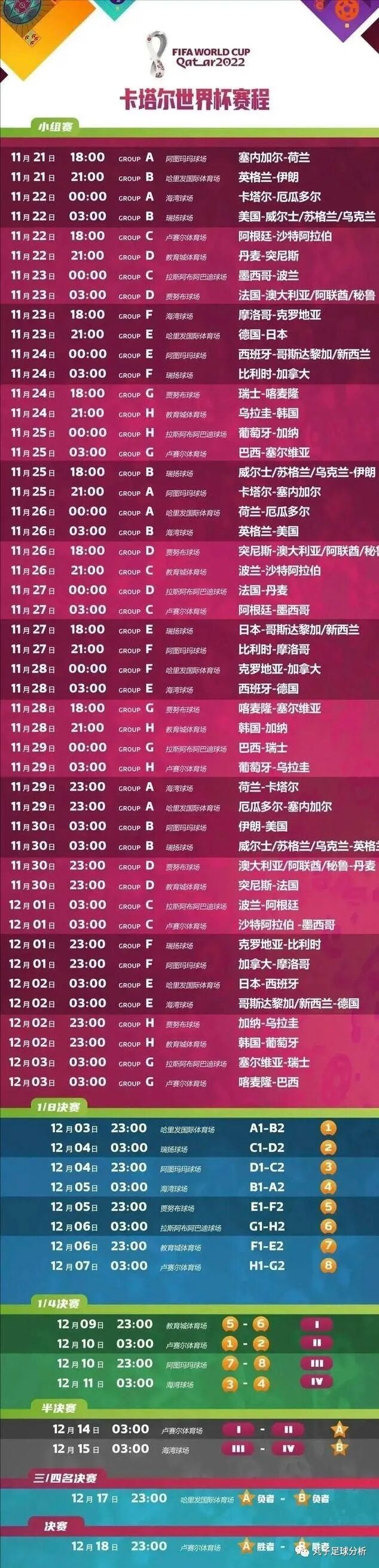 世界杯2022将在11月份开始,本届卡塔尔世界杯揭幕战将在2022年11月21日打响,决赛于当地时间12月18日晚18时在卢塞尔体育场进行。