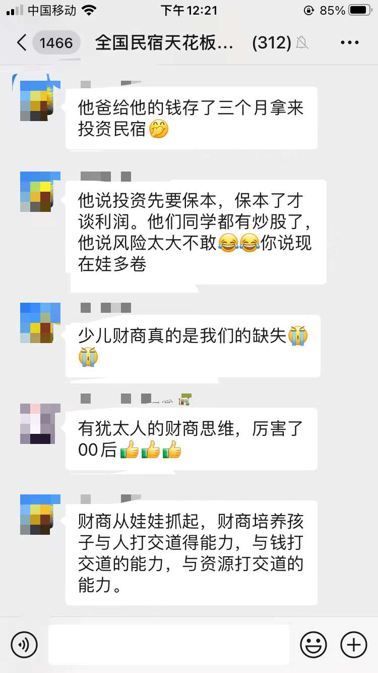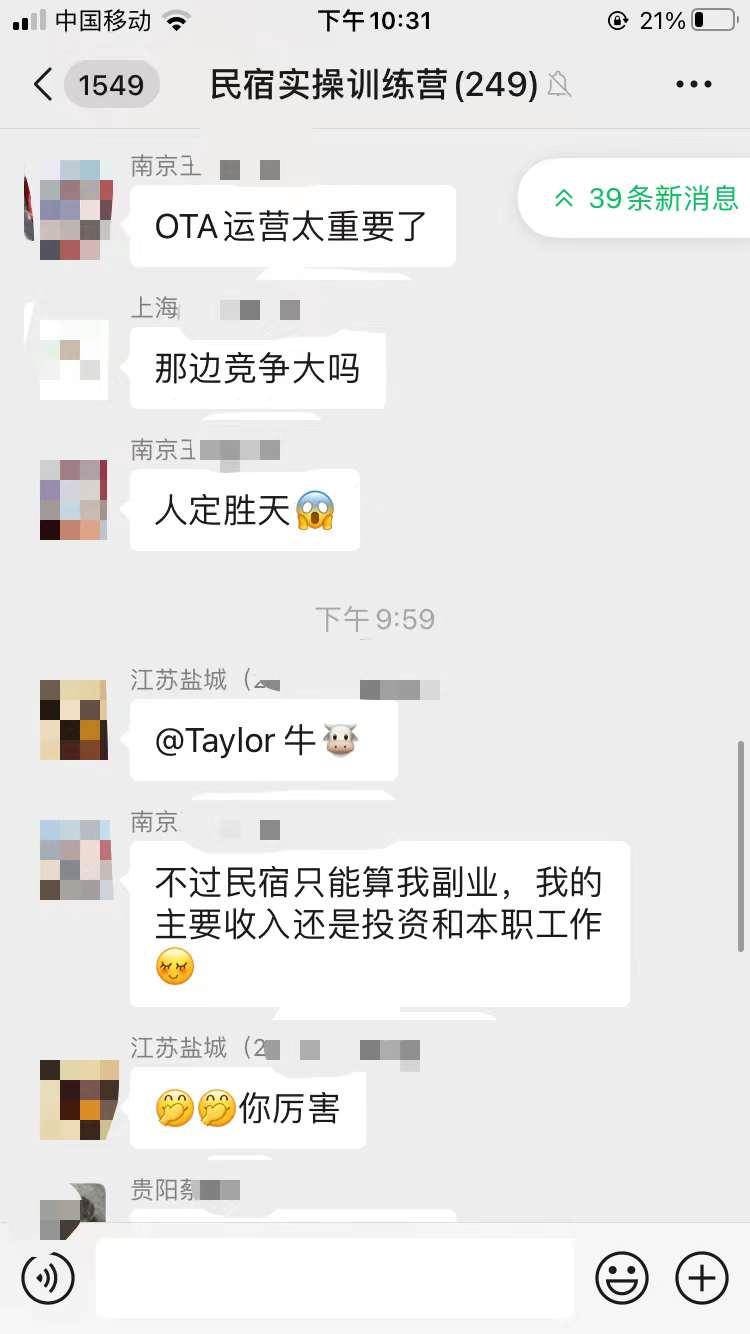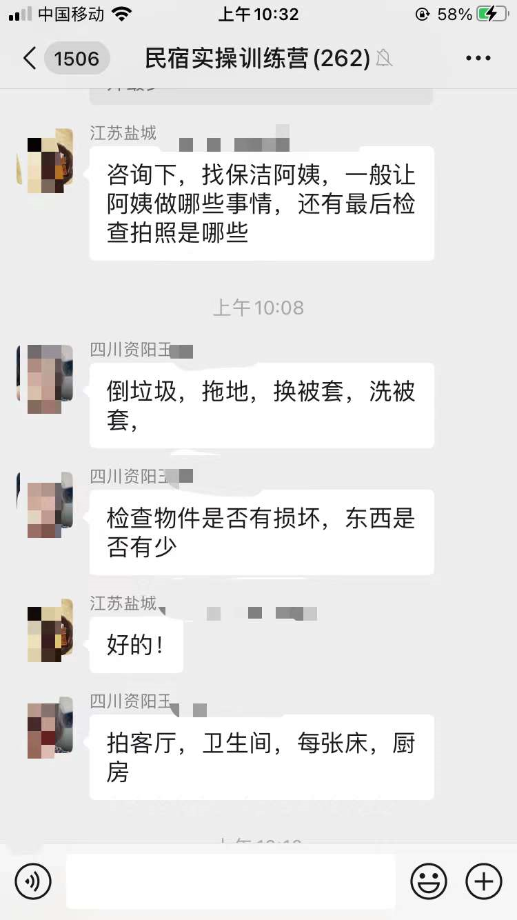 我们的社群每天只聊跟民宿经营相关的话题,共同交流学习进步,全国最高质量的民宿房东社群,没有之一!在这样的环境下,你不走,有人推着你走,你不跑,有人拉着你跑!出成绩只是时间问题!
