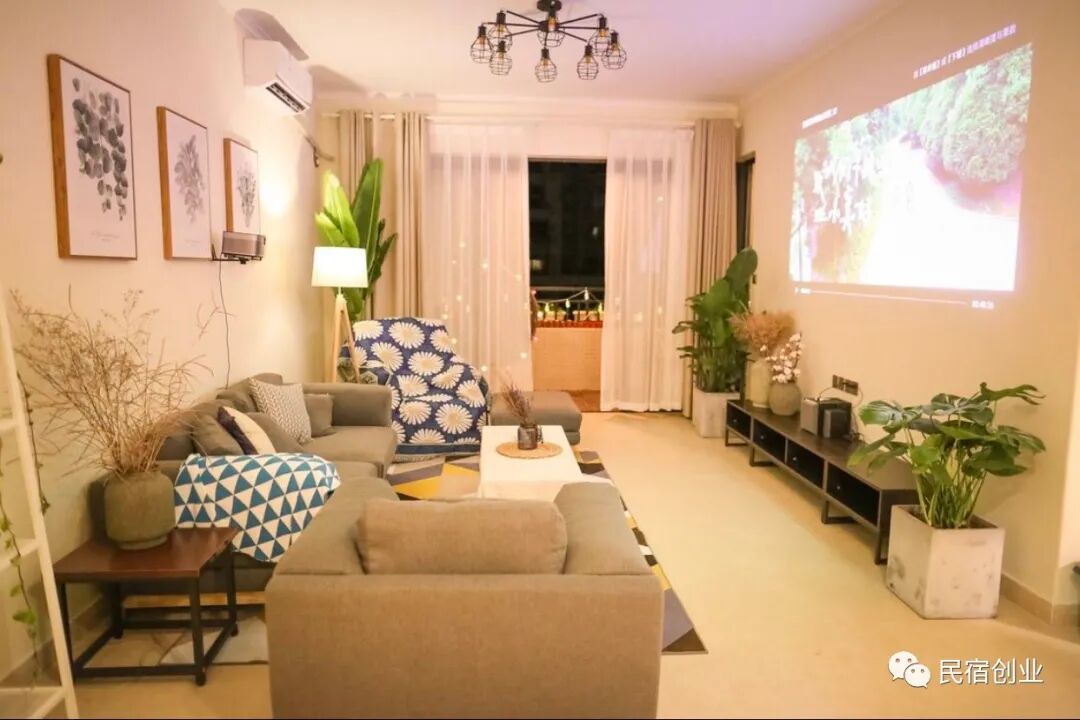 民宿创业-现在的城市民宿在装修的时候,基本上放弃电视,改用大屏幕的投影仪,看上去就像一个小小的家庭电影院,晚上的时候,一家四口看电影,其乐融融,尽享天伦之乐;