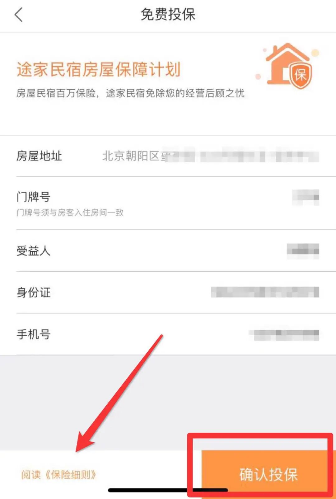 途家app房东端-我的订单,在待入住订单中点击“免费投保”,客人入住之前都可以操作哦。